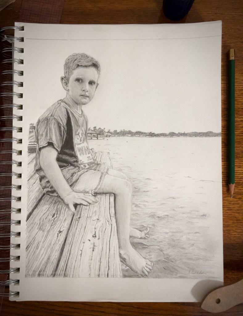 I sketched my first full body drawing over the last week. Here’s the final product. There’s a lot right and a lot off with the drawing. But I’m happy with this first full attempt. Love my boy, Sam!